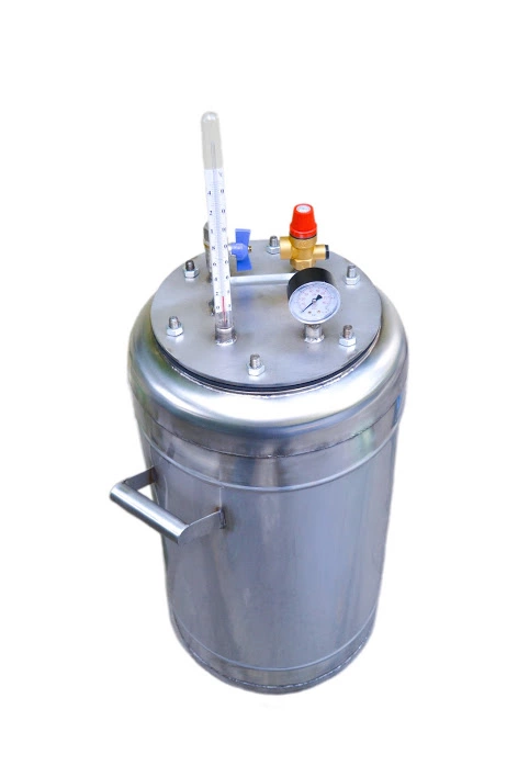 Для нагрева можно использовать любой доступный внешний источник тепла: электрическая или газовая плита, буржуйка, печь, паяльная лампа, примус, костер. Автоклавирование происходит под давлением (2,5-2,8 атм) и температурой (110-120 С). В таких условиях гибнут все болезнетворные бактерии.